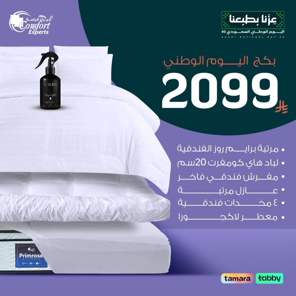 بكج اليوم الوطني 2025 مقاس مزدوج مع مرتبة برايم روز عزل الحركة