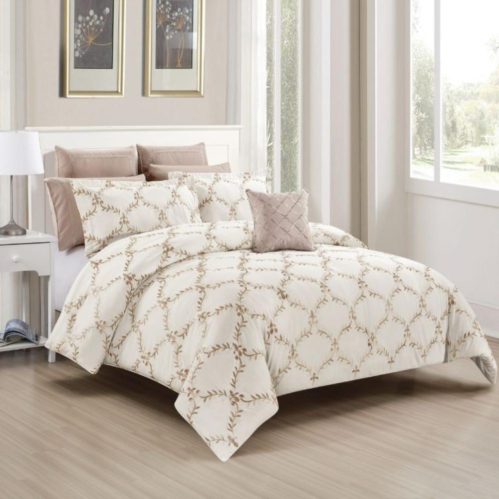 كل التفاصيل تنطق بالفخامة مع أجمل طقم مفرش سرير نفرين مطرز لينوم هوم موديل LANA: