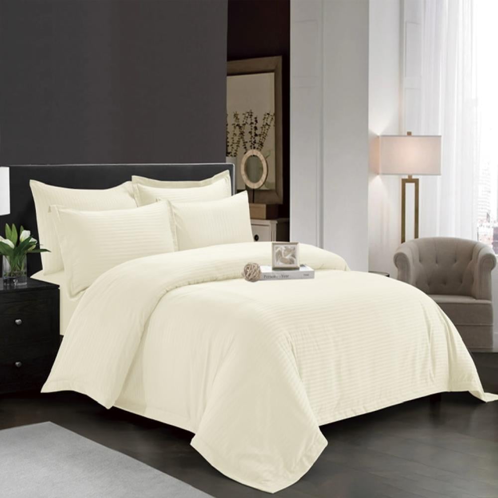 طقم مفرش فندقي مقلم لون سكري بدون حشوة مقاس مزدوج 03