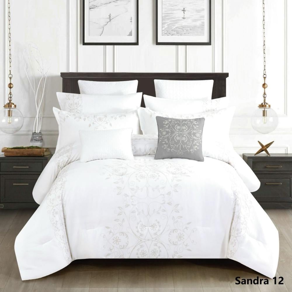 طقم المفرش الملكي المصمم بذوق رفيع وتطريز فاخر يضفي لمسة فخامة لا تُضاهى. يتميز بلونه الأبيض الأنيق وقماش المايكروفايبر الناعم، ليمنحك إحساسًا بالراحة والدفء طوال العام. يتكون الطقم من 10 قطع متكاملة تجمع بين الأناقة والعملية لتضفي على سريرك مظهرًا راقيًا يدوم.